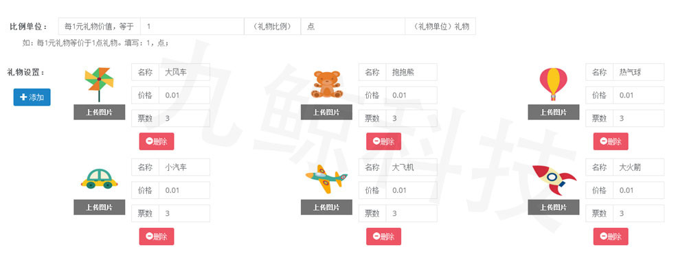 8、可以設(shè)定單個禮物的價格以及每個禮物贈送出去后可以為選手增加的票數(shù)