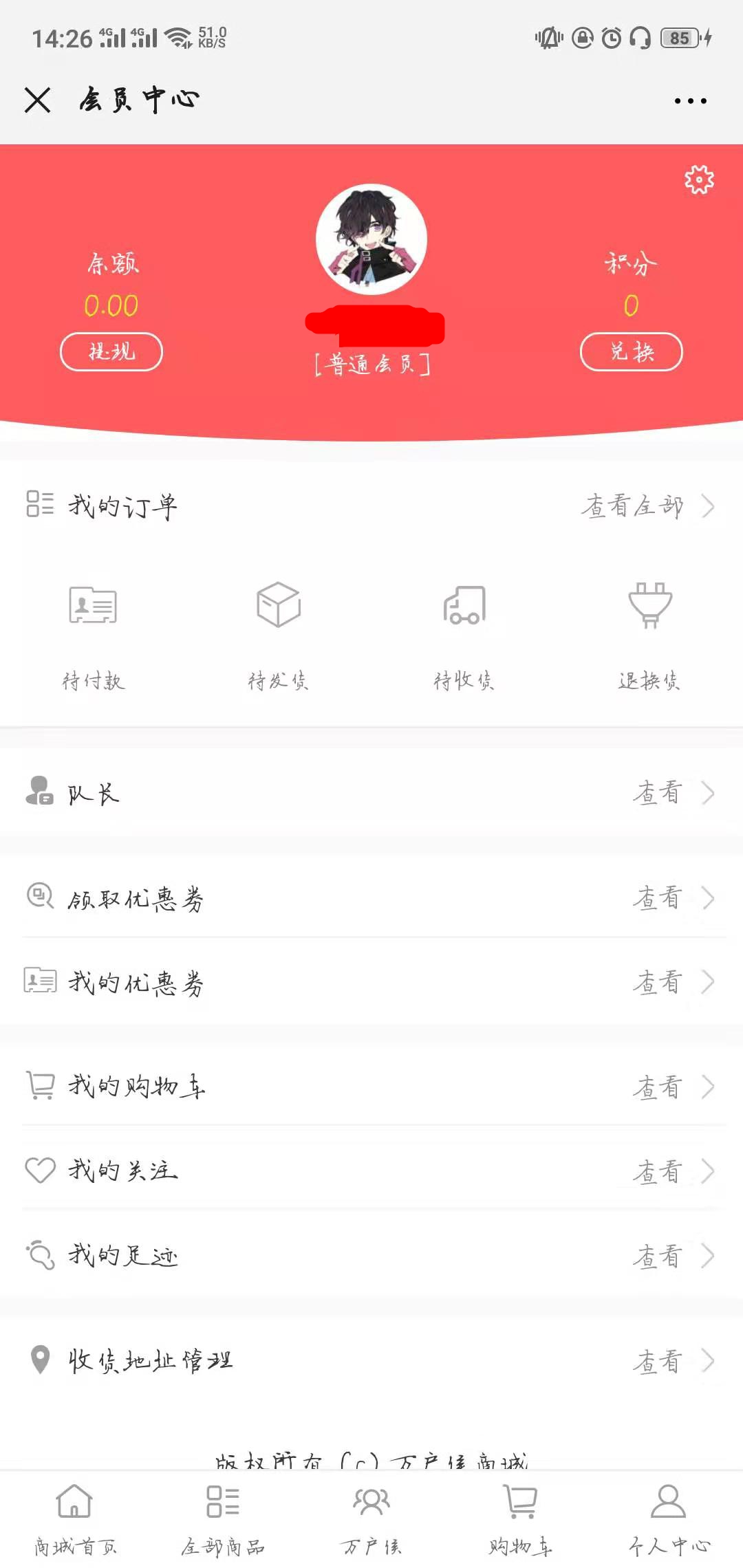 公眾號主頁面包括商城,服務和會員中心。服務主要是用來了解公司的,會員中心則是成為分銷商之后常用的功能,可以直接跳轉到萬戶侯界面、會員界面等。